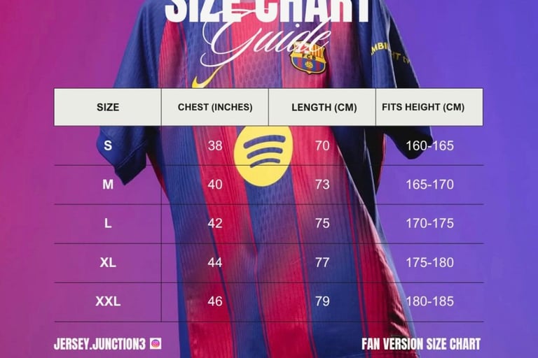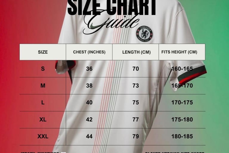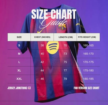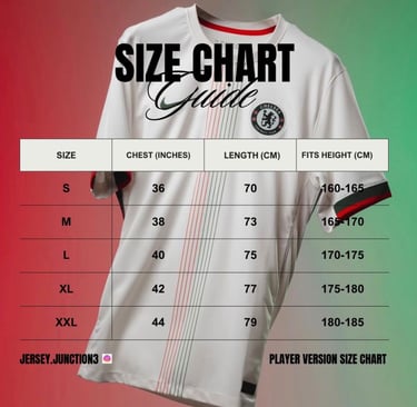 SIZE CHART FOR BOTH FAN & PLAYER VERSION